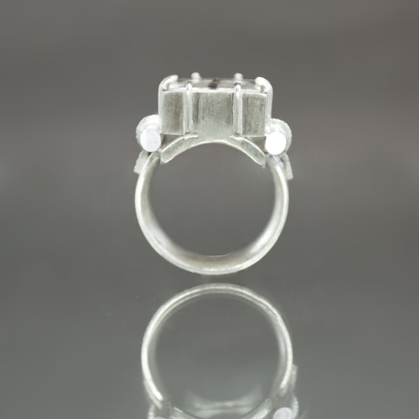 Black Tourmalinated Quartz Retro Tank Ring - Size 7