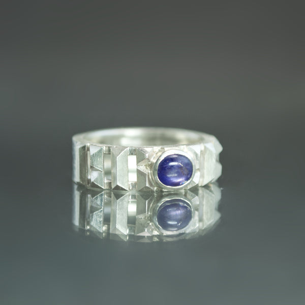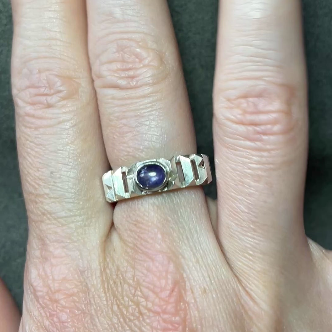 Indigo Star Sapphire Culet Screen Ring in Sterling SIlver - Size 7.75